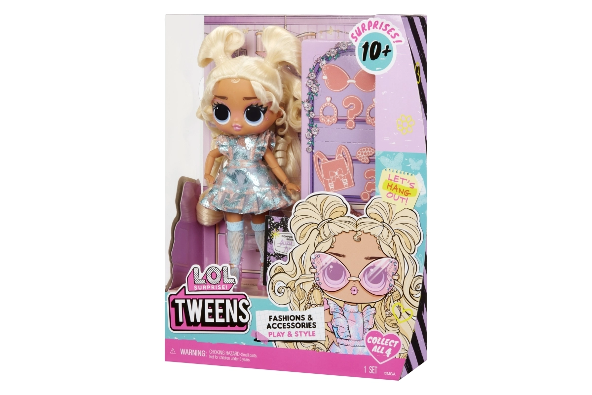 See armas Tweens nukk toob 10 üllatust, mis arendavad fantaasiat ja loovat mängu: päikeseprillid, ehted ning stiilne kott või seljakott. Kogu kõik sõbrad ja loo oma moeshow!