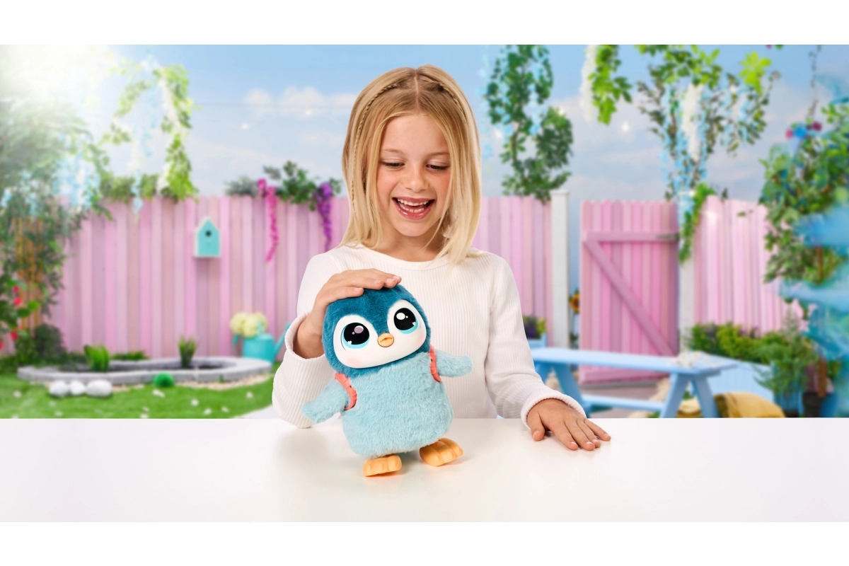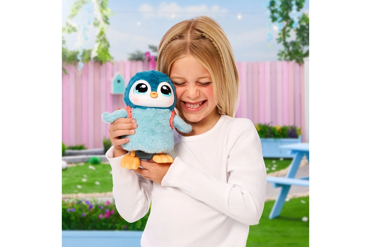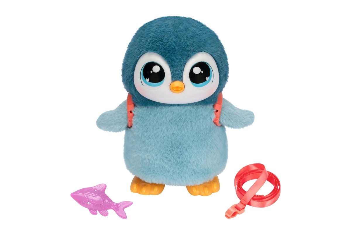 Soft-touch plüüsi tõttu on pingviin mõnus kallistada ja ohutu laste kätele. Tänu rohkem kui 25 helile ja reaktsioonile hoiab ta tähelepanu ning toetab fantaasiat ja hoolivust. Pakendis on kõik vajalik: pingviin, kalakujuline söötja, eemaldatav jalutusrihm ja juhend. Patareid on kaasas, nii et lõbu võib alata kohe.