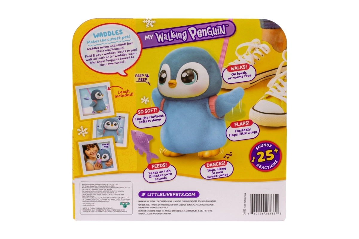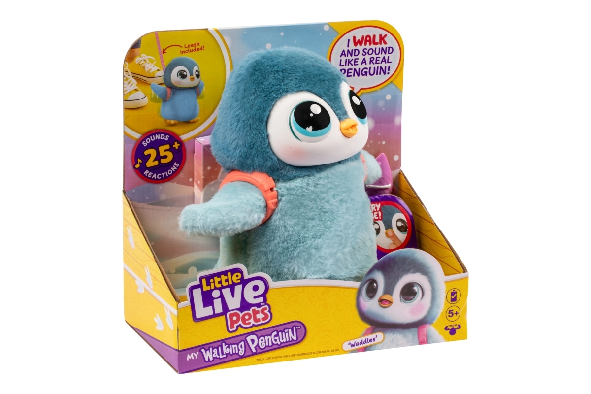 Avastage laste jaoks armas kaaslane – interaktiivne plüüsist pingviin sarjast Little Live Pets, kes kõnnib, vehib tiibadega ja noogutab pead. Tal on üle 25 heli ja reaktsiooni, ta reageerib puudutusele, toitub kalakesega ning tänu pehmele kohevkarvalisele plüüsile sobib suurepäraselt kallistamiseks. Komplektis on eemaldatav jalutusrihm jalutuskäikudeks ja mänguks.
