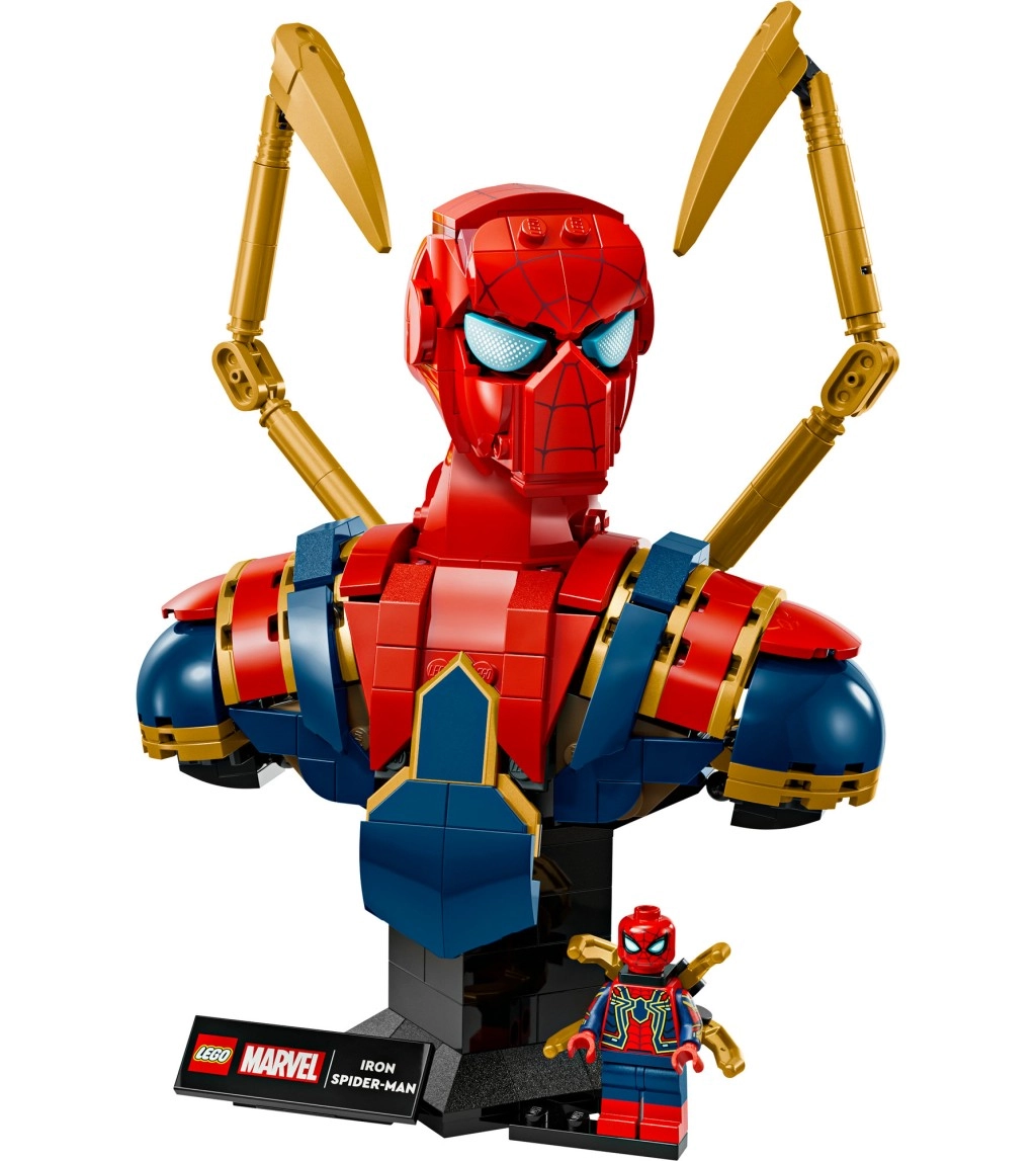 Sukeldu superkangelaste maailma detailse Iron Spider-Mani büsti mudeliga. See täiskasvanutele mõeldud premium-komplekt ühendab punase, sinise ja kuldse soomuse pilkupüüdva välimuse peenete detailidega, sh kahe liigendatud mehaanilise käsivarre ja pööratava peaga. Komplektis on ka Iron Spider-Mani minifiguur ning kaks vahetatavat alust nimesildiga – üks minifiguuri jaoks ja üks ilma.