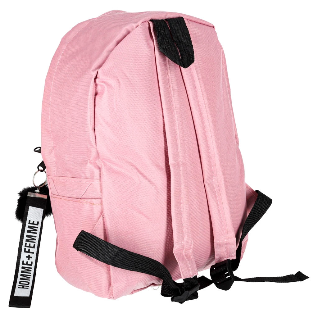 Varustatud musta pomponi ja tekstiilse HOMME+FEMME rihmaga, mis annavad seljakotile isikupärase stiili.