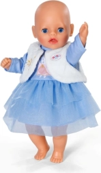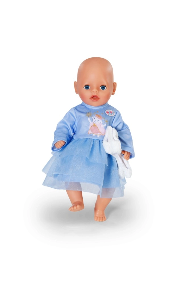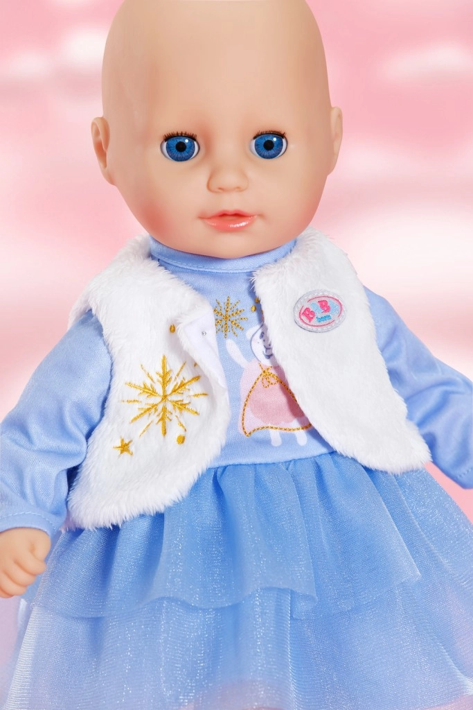 Stiilne talveriietus 36 cm nukkudele: sinine pikkade varrukatega kleit, kihiline tüllseelik ja sametpehme vest. Lihtsa lõikega on riietamine kerge ka kõige pisematele. Mängulistes pastelltoonides komplekt toob võluva talvise ilme, mugava riietamise ja palju loovat lõbu.