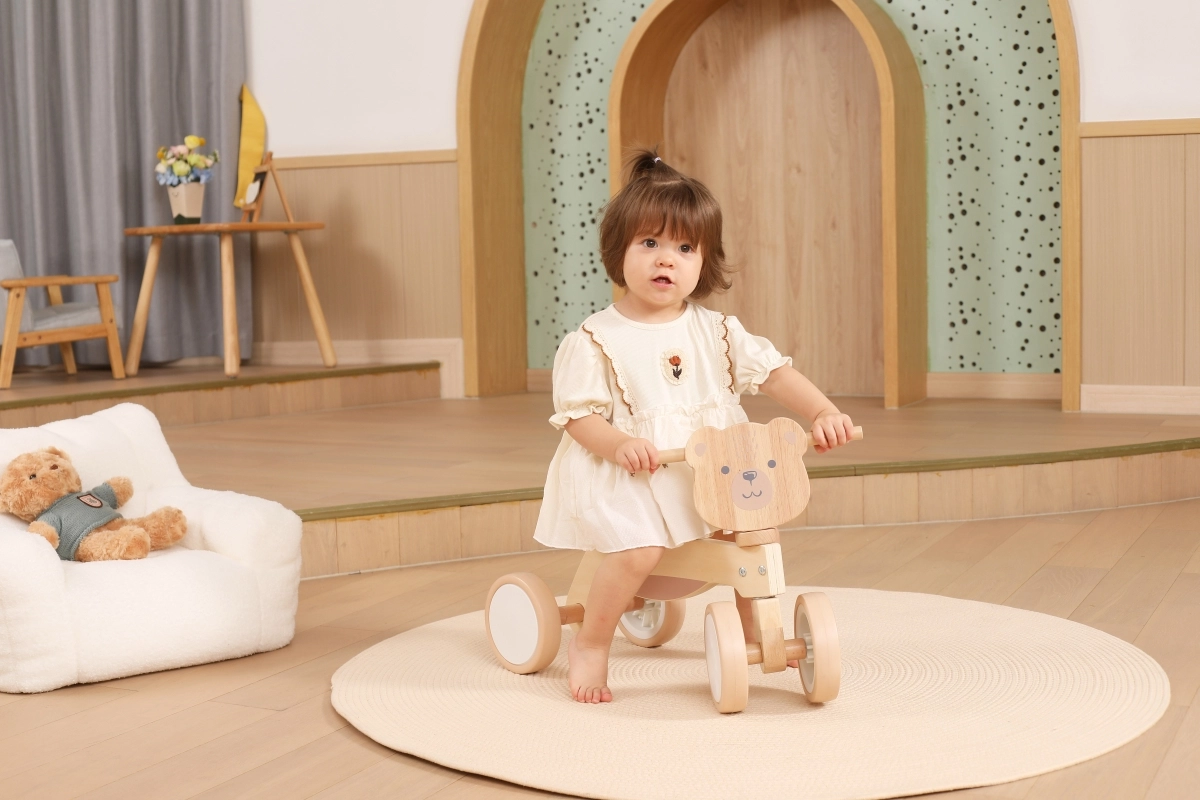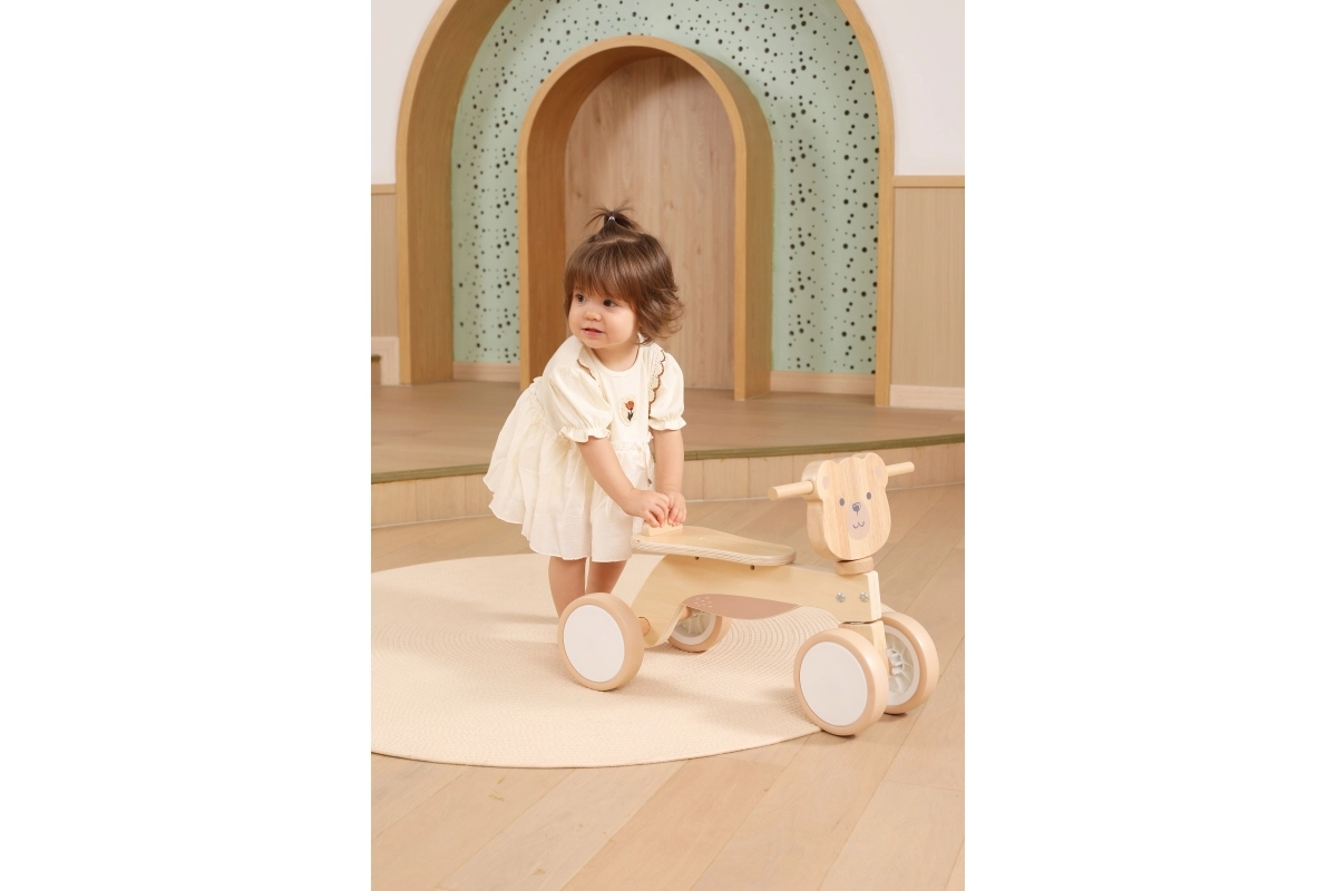 Armas puidust jooksuratas karukujulise esipaneeliga brändilt VIGA sarjast PolarB toetab laste esimesi sõite juba alates 12. elukuust. Stabiilne neljarattaline alus, ohutu juhiblokeering äkiliste pöörete vältimiseks ja vaiksed EVA-rattad, mis on põranda vastu õrnad, tagavad mugava ja turvalise sõidu nii toas kui õues. Loomulik puidune ilme ja sõbralik karudisain võidavad laste südamed kohe.