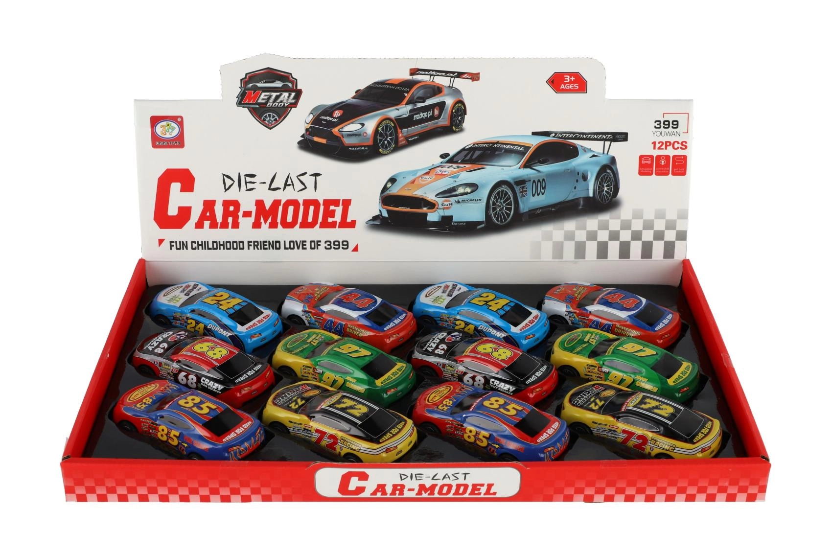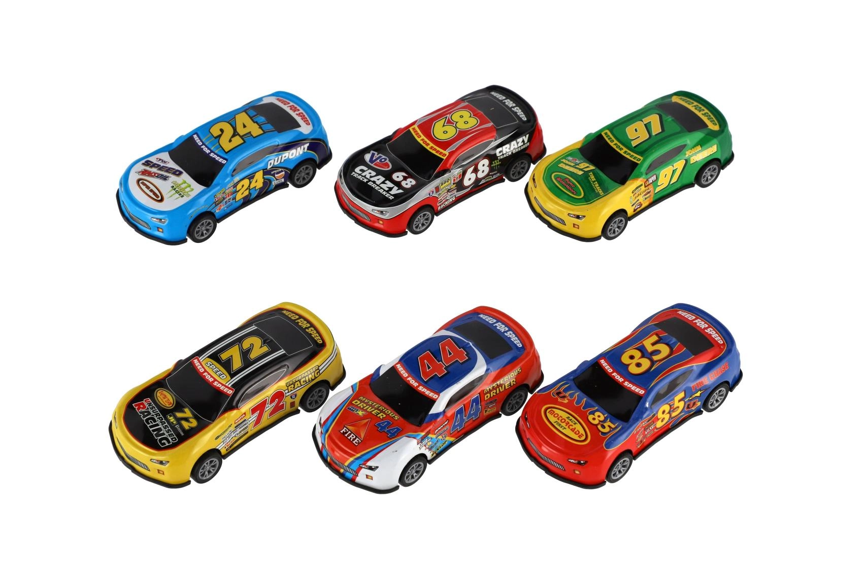 Naudi kiirust ja põnevust stiilsete võidusõiduautodega, millel on värvilised numbrid ja sportlik graafika. Ideaalne laste mängudeks ja kogujatele!
