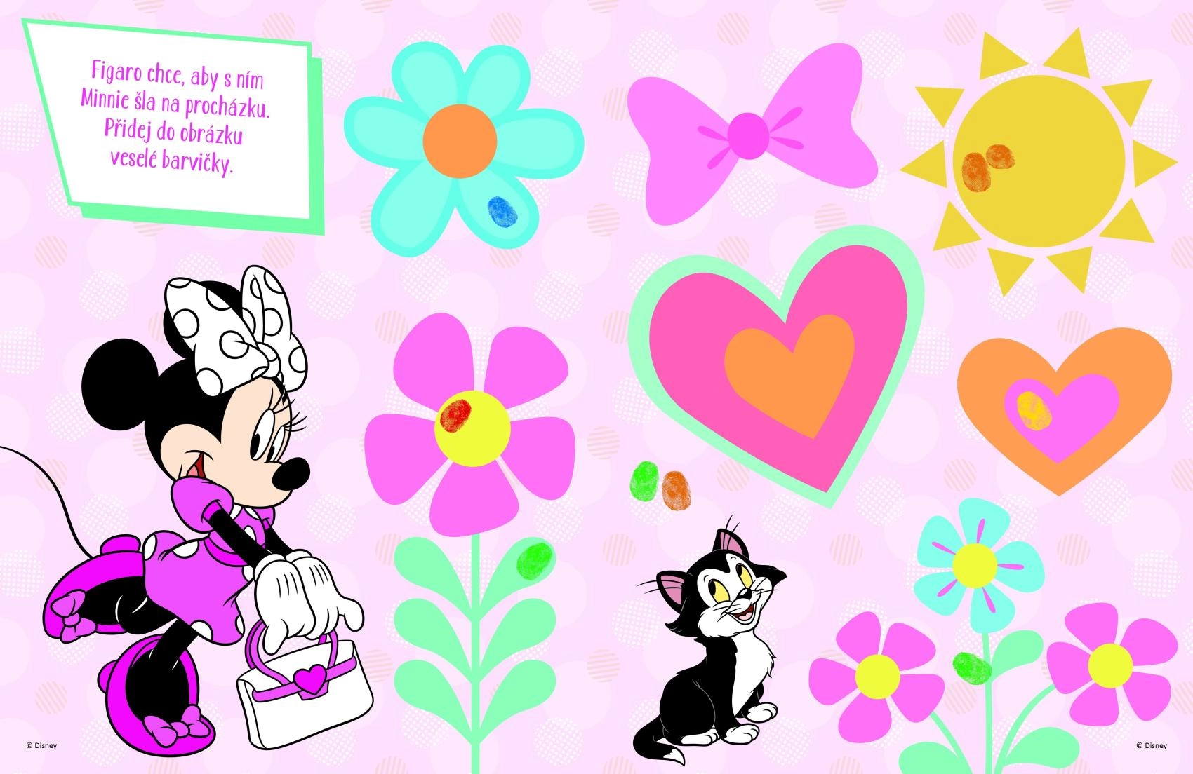Loominguline MINNIE vihik sõrmevärvidega on suurepärane viis, kuidas lapsed mänguliselt arendavad kujutlusvõimet ja peenmotoorikat. Piisab, kui kasta sõrm värvi ja teha jälg ettevalmistatud piltidele – see on lihtne, ohutu ja lõbus.