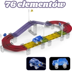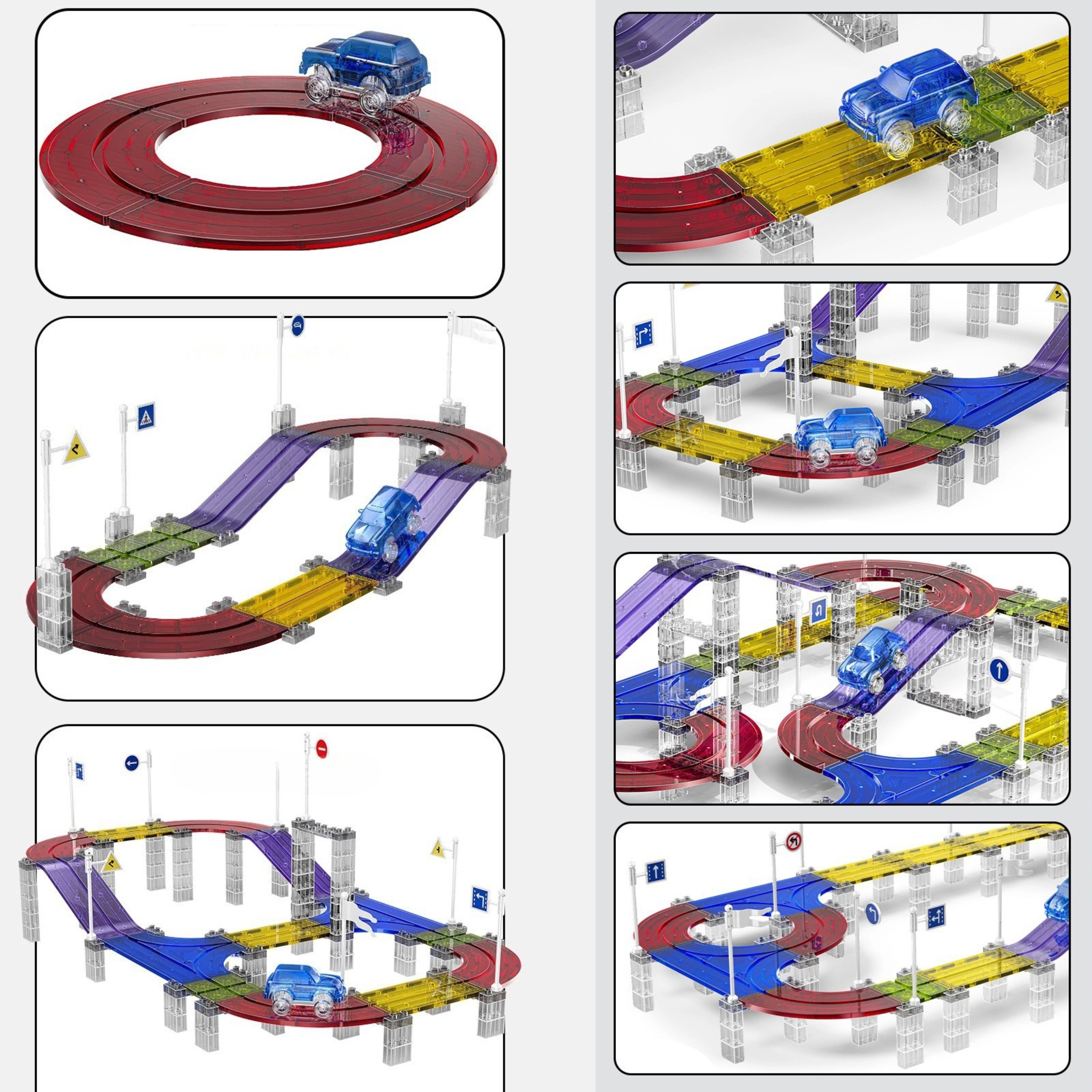 Avastage ehituskomplekt, mis kasvab koos teie laste fantaasiaga. Magnetelemendid ühilduvad kiiresti ja kindlalt, võimaldades luua sildu, rampleid ja järske kurve ilma tööriistadeta. Tänu LED-valgustusega autole on sõit põnev ka pimedas.
