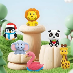 - Vorm motiividega: pingviin, kaelkirjak, lõvi, flamingo, panda, elevant, puu