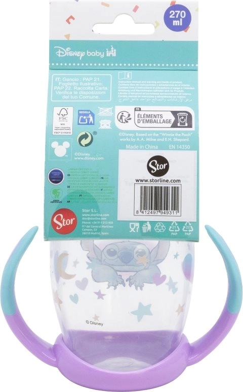 Kõrvade ja silikoonist tilaega tass STITCH 270 ml aitab lastel mugavalt ja turvaliselt minna üle pudelilt tassile. Pehme tila on õrn tundlikele igemetele ja hammastele, samas kui libisemisvastased käepidemed tagavad kindla haarde ka väikestel kätel.
