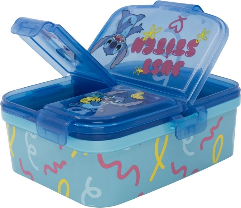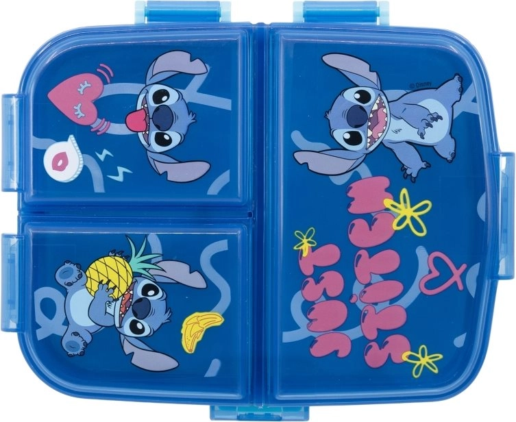 Stiilne ja praktiline einekarp motiiviga STITCH pakub 1 suurt ja 2 väikest vaheseina toidu selgeks eraldamiseks. Valmistatud vastupidavast materjalist ja ei sisalda BPA-d – ideaalne kooli, mänguväljakule ja väljasõitudeks.