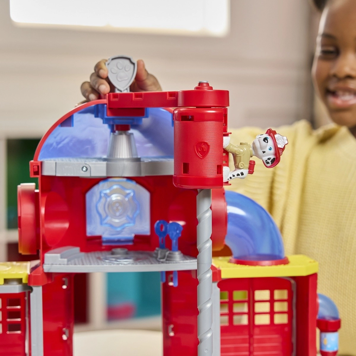 See detailne PAW Patroli tuletõrjedepoo toob lasteni seriaali väärilise realistliku tegevuse. Ootamas on tuled ja helid, spiraalne toru koos tõstukiga kiireks väljasõiduks ning jaam “vee täiendamiseks” enne missiooni. Marshall on valmis teele asuma oma tuletõrjeautoga ja leekidega võitlema veekuulide tulistamise abil.