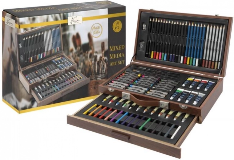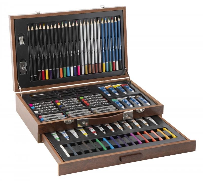 Komplekti sisu on kokku pandud nii, et see kataks kogu kunstiliste vajaduste spektri – joonistamisest kuni akrüüli ja akvarellini. Lihtsalt saate proovida nii kuivi kui ka märgi tehnikaid, kihtide kombineerimist ja toonide segamist. Tänu praktilisele pakendile sobib komplekt koju, kooli ja reisile.