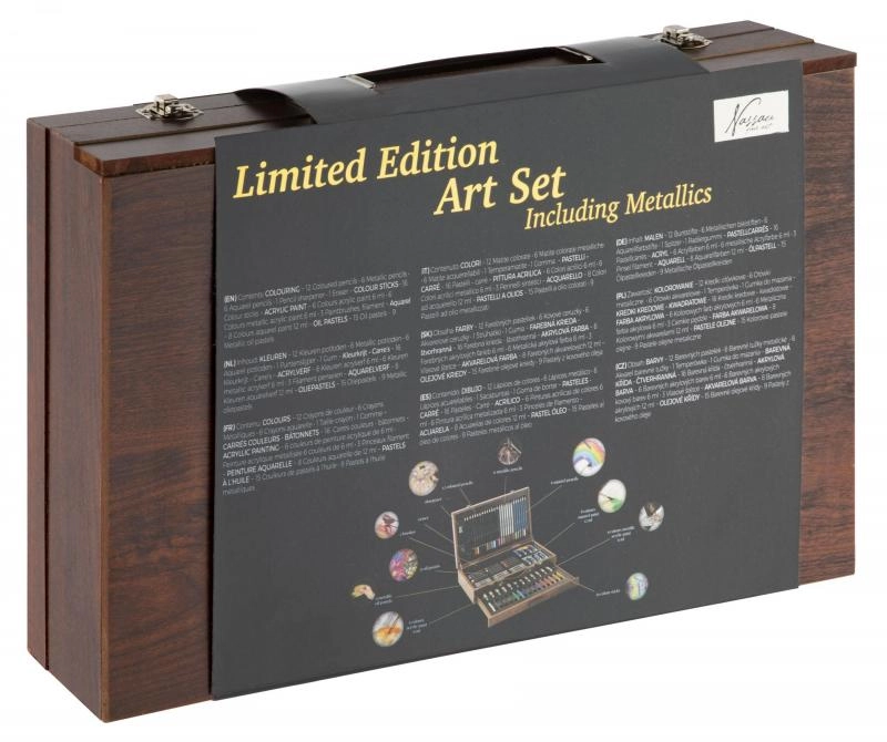 Avastage universaalne kunstikomplekt elegantses puidust kohvris, mis pakub kõike nii joonistamiseks kui ka maalimiseks. Tugev konstruktsioon, suletav kaas ja vastupidavad lukud tagavad turvalise hoiustamise ning lihtsa kaasaskandmise. Komplektist leiate laia valiku värke, pliiatseid, kriite ja pintsleid lõpututeks loometundideks. Ideaalne nii algajatele kui ka edasijõudnutele.