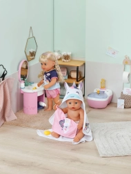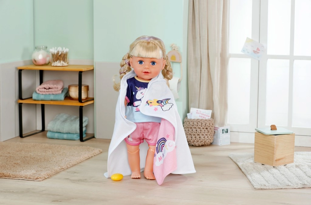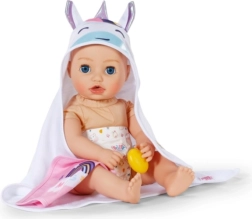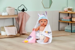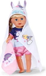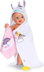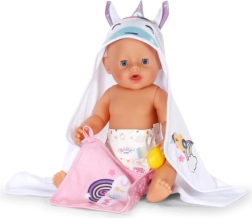 Paku oma nukule pärast vanni maksimaalset mugavust selle armsa BABY born rätikukomplektiga. Komplektis on kaks pehmet rätikut ükssarviku ja vikerkaare motiiviga, kapuuts trüki ja kõrvadega. Ideaalne 36 cm ja 43 cm nukkudele. Pehme materjal, võluv ükssarviku motiiv ja praktiline kapuuts stiilseks kuivatamiseks ja mängimiseks.