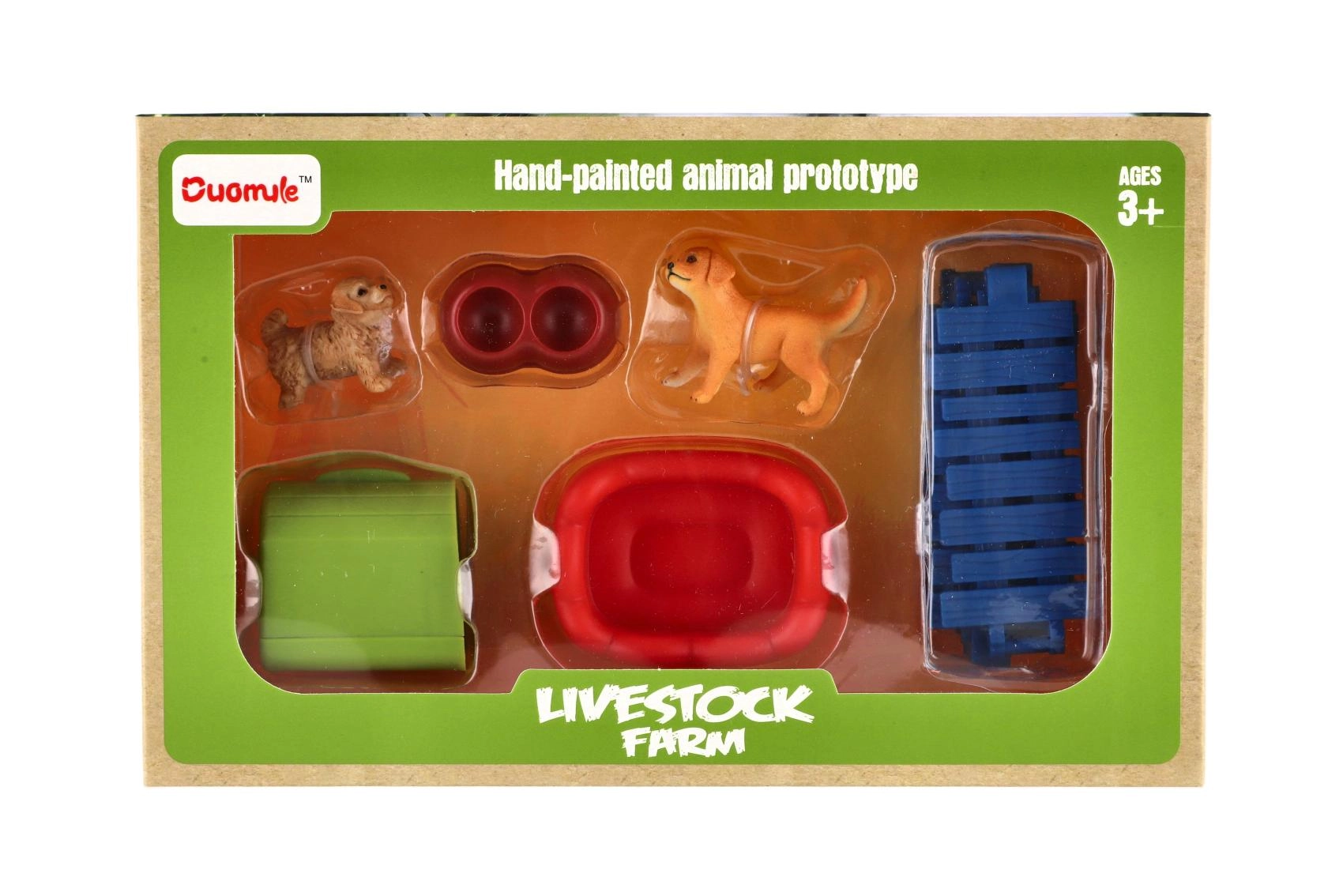See mängukomplekt sisaldab kahte realistlike detailidega koerafiguuri, aedikut jooksuala loomiseks ning praktilisi lisandeid, nagu kauss ja magamiskoht. Lapsed saavad luua oma maailma ja harjutada loomade eest hoolitsemist.