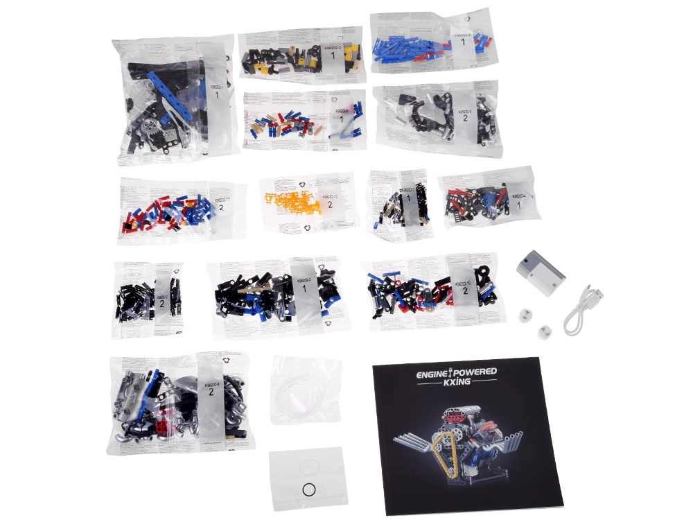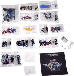 Komplekti kuuluvad nummerdatud kotikesed lihtsaks orienteerumiseks, USB‑laadimiskaabel ning selge pildijuhend. Efektne punane valgus annab mudelile mõjuva ilme ja toob esile liikuvad osad.