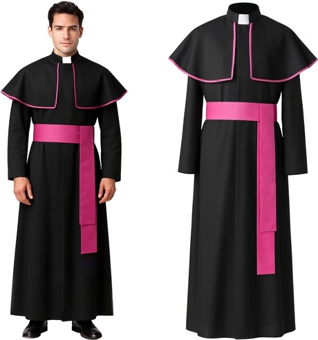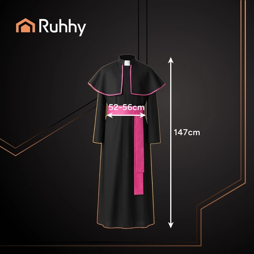 Klassikaline vaimuliku kostüüm pika sutaani, kraega pelernka ja lillaka vööga on valmis kostüüm, ideaalne Halloweeniks, karnevaliks, cosplayks ja teatrielamusteks. Vaba lõige universaalses suuruses XL/XXL tagab mugavuse ja lihtsa selgapaneku, realistlik välimus tõmbab tähelepanu igal üritusel.