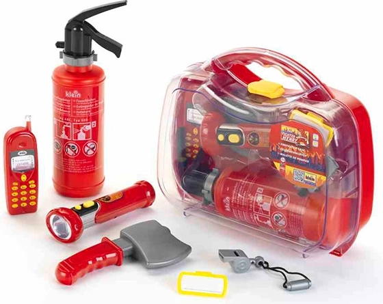 Täielik päästemäng väikestele kangelastele! See tuletõrjekohver toob kaasa kõik vajalikud vahvad seiklused: toimiv tulekustuti pihustusfunktsiooniga, mobiiltelefon, kirves, nimesilt, vile ja taskulamp.