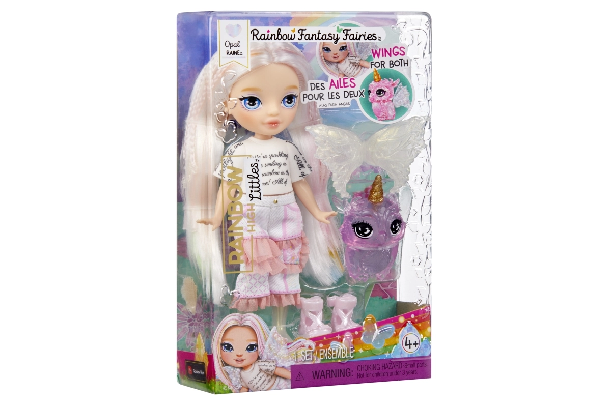 Astuge fantaasiamaailma nukuga Rainbow High väike haldjaõde Opal. Tänu peentele detailidele, kammittavatele juustele ja maagilistele tiibadele naudivad lapsed tunde loovat mängu. Lemmikloom, kes saab kanda haldjatiibu, pakub veelgi rohkem lõbu ja võimalusi oma lugude jutustamiseks.