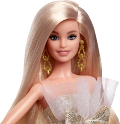 Astuge maagilisse pühademeelsusesse Barbiega, kes kannab rikkalikku kuldvalget kleiti lillemustri, tüllkaunistuste ja efektse lipsuga. Tänu liigendatud kätele on nukku lihtne poseerida, luues kauneid poose nii mänguks kui ka lastetoa väljapanekuks.