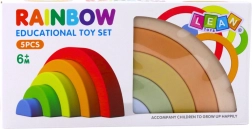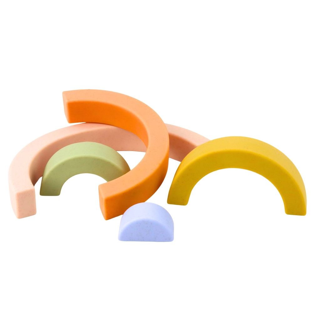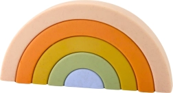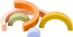 Pastelne kummist vikerkaare-ehituskomplekt on suurepärane meeleline mänguasi kõige pisematele. See toetab loovust, loogilist mõtlemist ja liigutuste koordinatsiooni. Viit pehmet eri suurusega osa saab vabalt laduda ja kombineerida mitmeks konstruktsiooniks. Ohutud, pehmed ja paindlikud klotsid ilma teravate servadeta tagavad mugava ja turvalise mängu.