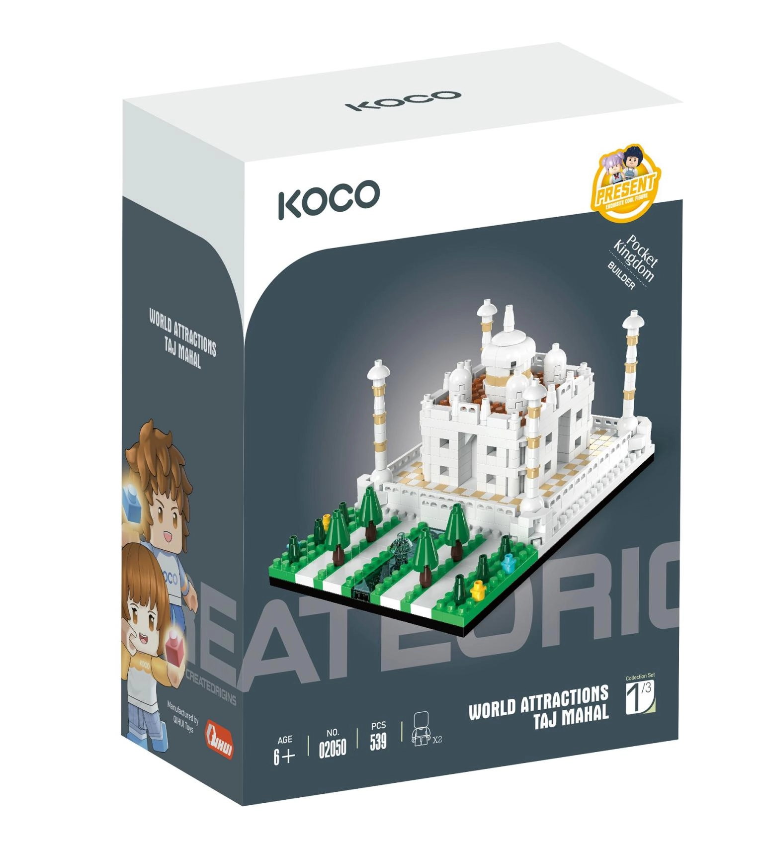 Ehita koju ikooniline vaatamisväärsus detailse KOCO Taj Mahali komplektiga. 539 plastdetailist loote elegantse miniatuuri kuulsast India mausoleumist. Ideaalne loovaks ajaviiteks, kannatlikkuse arendamiseks ja stiilseks dekoratsiooniks tuppa. Sobib lastele alates 6. eluaastast.