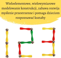 - 38 magnetpulka (sinine, kollane, oranž), 40 metallkuuli, 50 läbipaistvat ühendus-stabilisaatorit