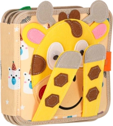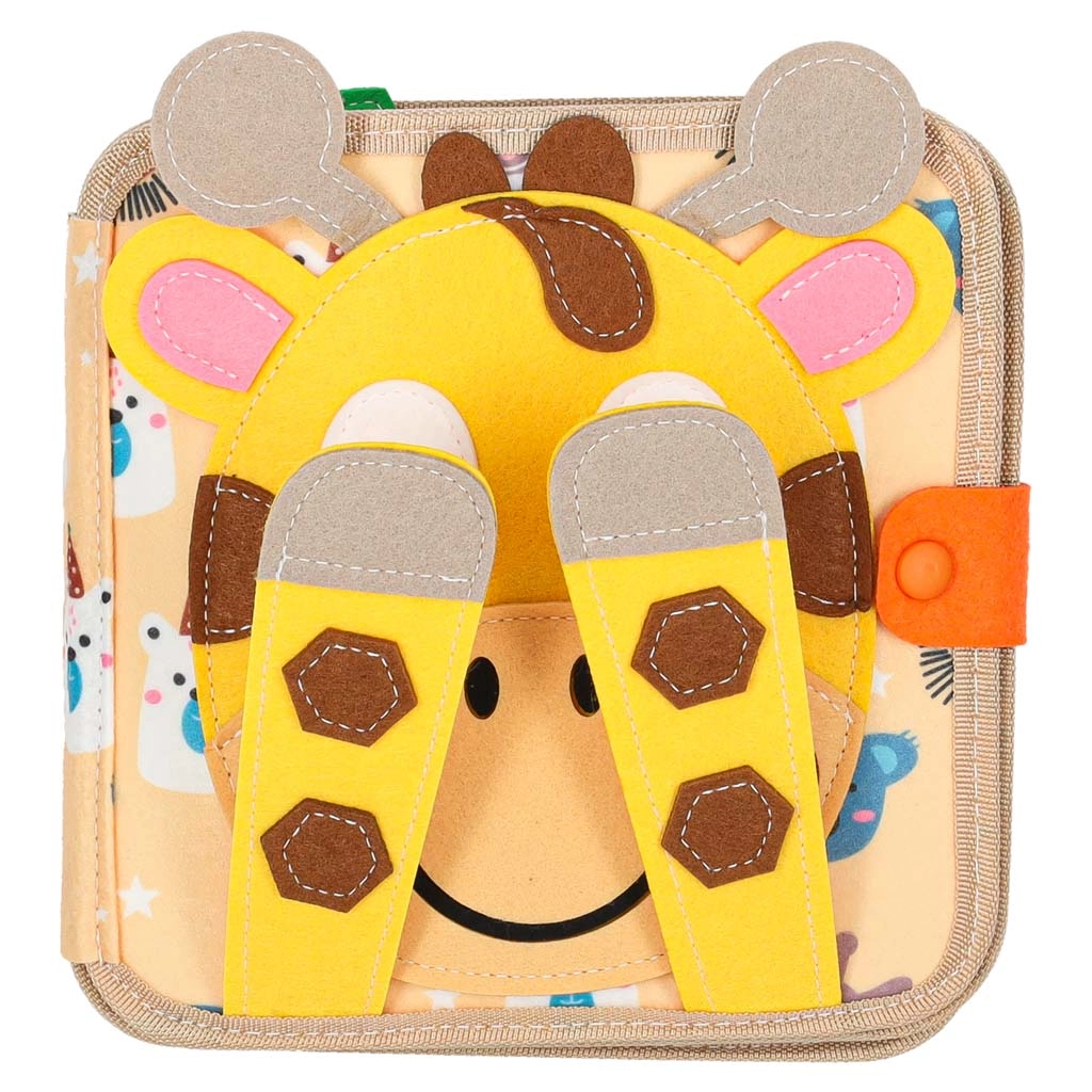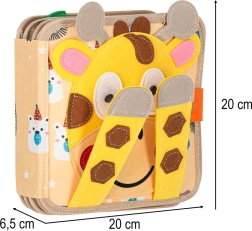 Võluva maailma teejuhiks on sümpaatne kaelkirjak, kes kaanel mängib “kukku-mängu”. Sees ootavad temaatilised lehed: ilm ja vikerkaar koos vihmapiiskade sobitamisega, savann kaelkirjakuga ja katsutavate taimedega, geomeetrilised kujundid, loomakesed kinnitamiseks, liikuvad sõidukid, siil eemaldatavate õunte ja lepatriinuga, puuviljad sisemuse vaatamiseks ning puu elanikud värvide sobitamisega majakestesse.