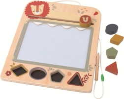 Puidust magnettahvel lõvipoja motiiviga on lõbus ja samas hariv mänguasi alates 3. eluaastast. Magnetpliiatsi ja nelja templiga harjutavad lapsed peenmotoorikat, käe-silma koordineerimist ning loovust. Kerge ühe tõmbega kustutamine võimaldab joonistada ikka ja jälle ilma segaduseta.