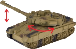 Nauti põnevaid lahinguid detailse RC-tankiga kõrbekamuflaažis. 27 MHz kaugjuhtimine võimaldab sujuvat edasi/tagasi sõitu, pööramist ja täispööret 360°. Torni saab käsitsi pöörata 360° ning valgus- ja heliefektid võimendavad realistlikku kogemust.