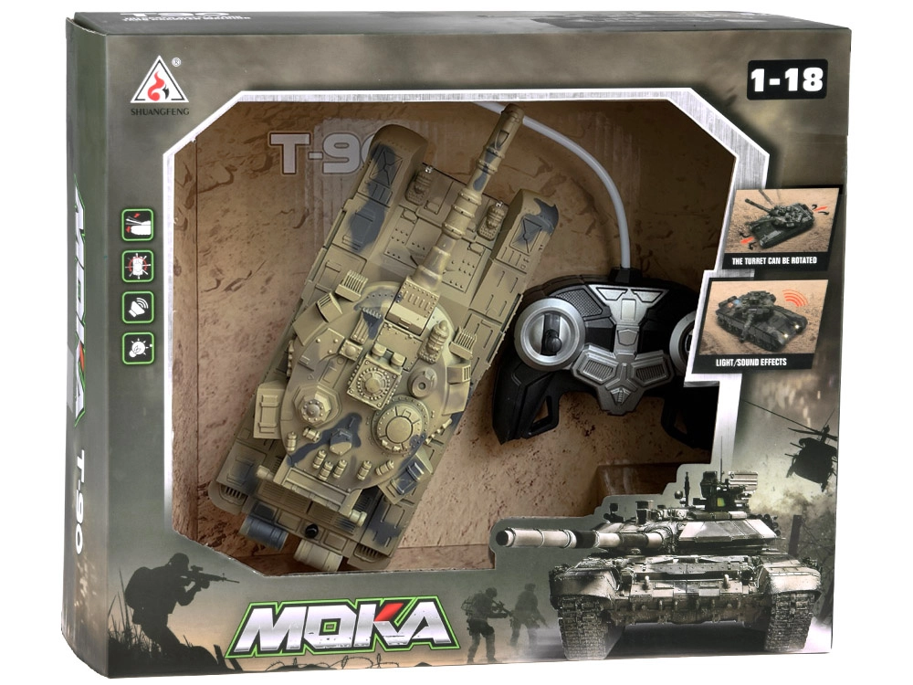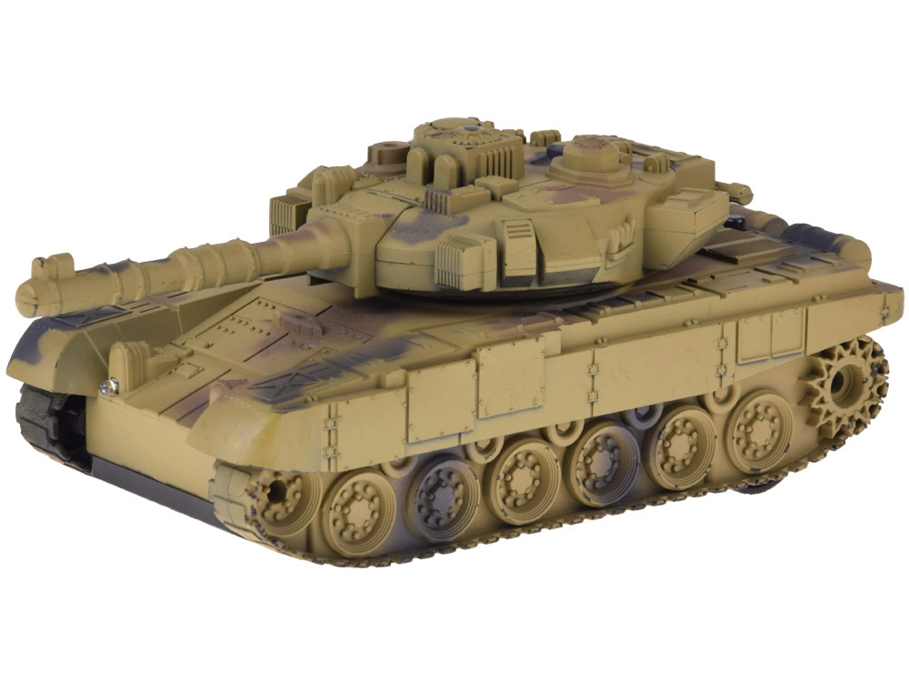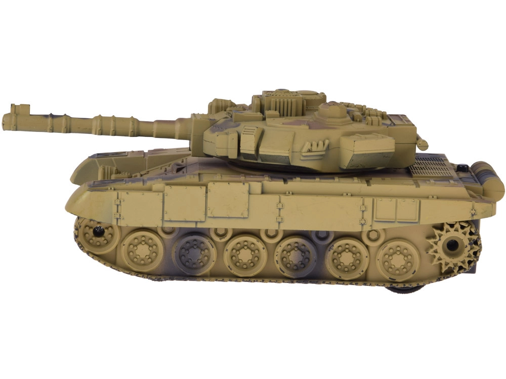 RC-tank kõrbekamuflaažis pakub realistlikku sõitu sagedusel 27 MHz, 360° pöörlevat torni, valgusefekte ja laskmise helisid. Lihtne juhtimine, roomikalus ja komplektis olev taaslaetav aku tagavad laste ja täiskasvanute jaoks pika ja lõbusa mängu.