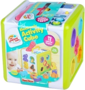Kuubik on varustatud valgus- ja heliefektidega, mis võimendavad mänguelamust ja aitavad arendada lapse meelte tajumist. Lisaks muudab praktiline sang selle hõlpsasti kaasaskantavaks.