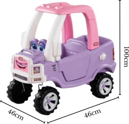 Roosa-lilla Little Tikes Cozy Coupe Truck tõukeratas pakub 18 kuu kuni 5 aasta vanustele lastele kodus ja õues turvalist, aktiivset ja loovat lõbu. See pakub foot-to-floor režiimi, eemaldatavat põrandaplaati, võimalust vanemal lükata, avatavaid uksi, signaali ja ruumikat “pakiruumi” mänguasjadele.
