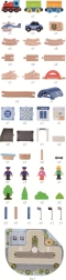 Temaatilised lisad nagu politseiauto, jaamahoone, tuled, märgid ja figuurid rikastavad mängu lugudega ning õpetavad liikluse põhialuseid.