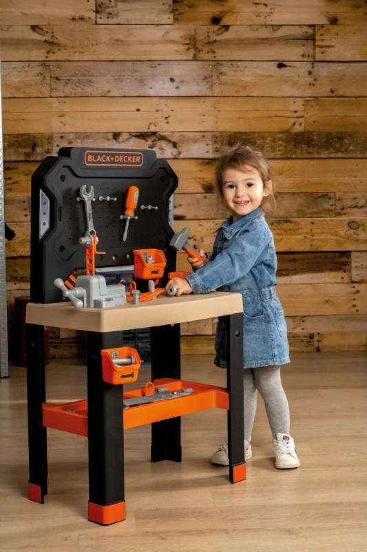 Anna lastele omaenda töökoda, mis näeb välja nagu päris isa töölaud. Smoby kaubamärgi Black+Decker Bricolo Center lastetöökoda arendab peenmotoorikat, loovust ja tehnilisi oskusi. Suur puidust dekooriga tööpind pakub küllalt ruumi kruvimiseks, mõõtmiseks ja naelte sisse löömiseks.