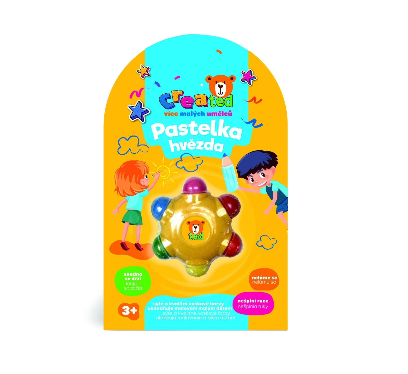 Avasta joonistamisrõõm originaalsete tähtkujulisete vahapliiatsitega. Iga tipp pakub erinevat säravat värvi, ergonoomiline kuju sobib suurepäraselt laste väikestesse kätesse ja on ideaalne väikestele kunstnikele alates 3. eluaastast.