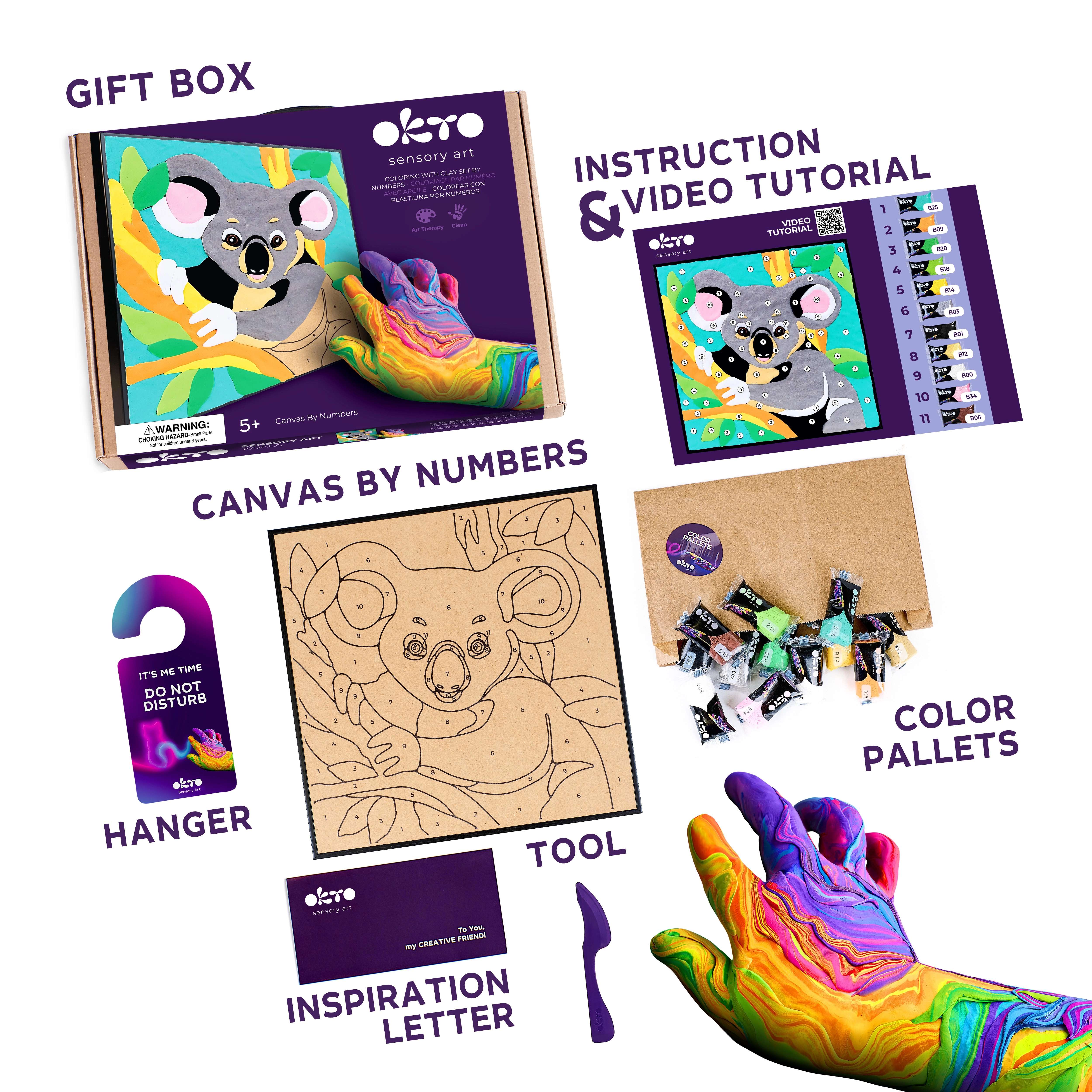 Looge ainulaadne 3D pilt koala motiiviga. OKTO komplekt on kujundatud nii, et töö oleks intuitiivne ja lõbus – järgige numbreid ja kandke värvilist massi peale kaasasoleva modelleerimisvahendiga. Tulemus on plastiline ja dekoratiivne, sobib eksponeerimiseks lastetoas või armsaks kingituseks.