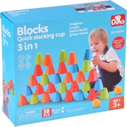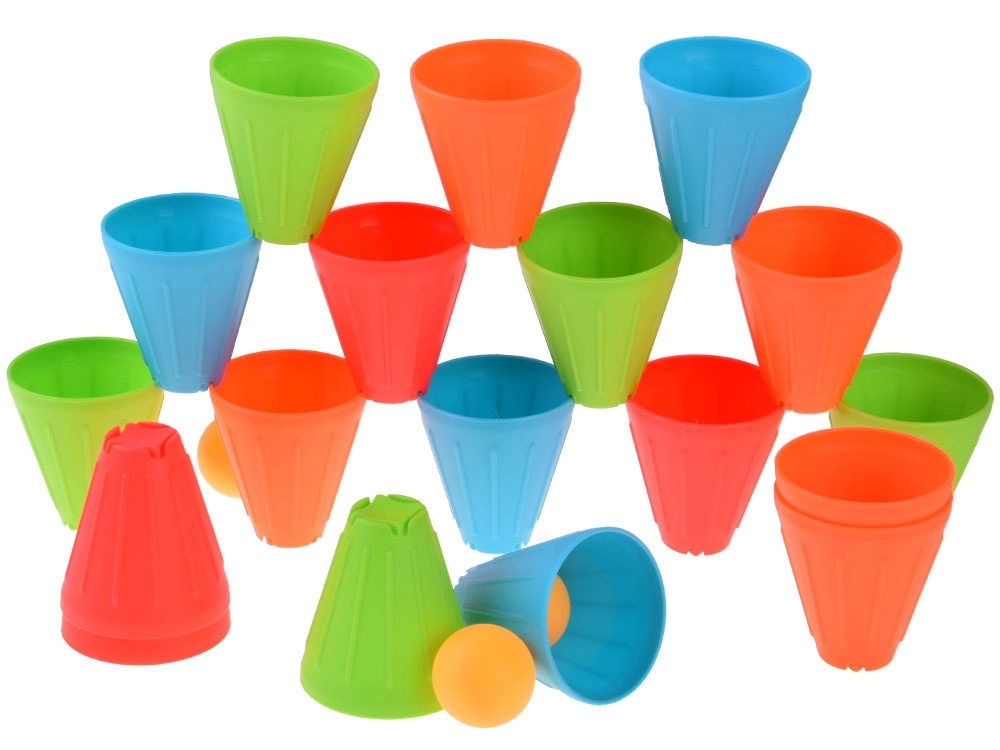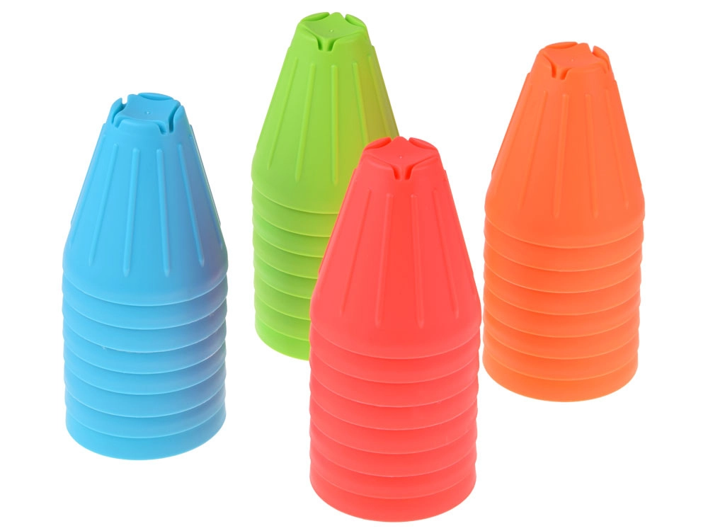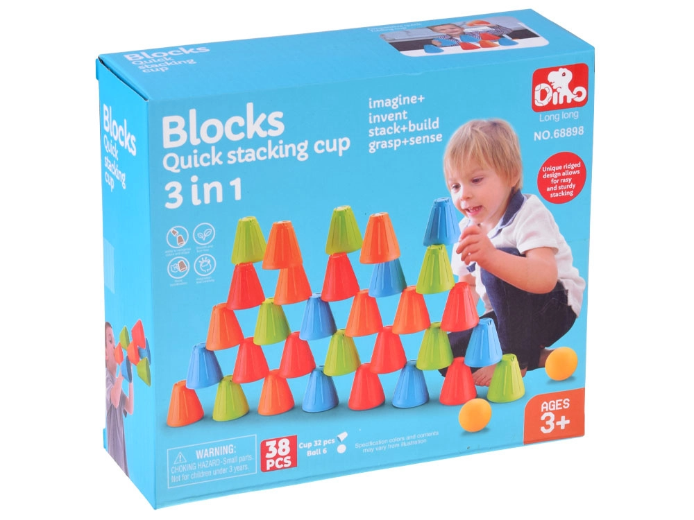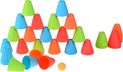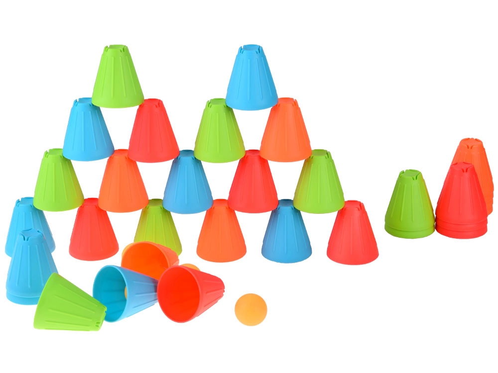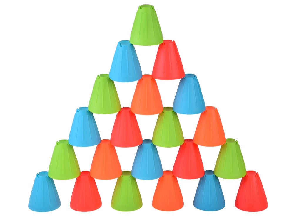 See universaalne komplekt pakub lastele tunde aktiivset lõbu. Sügavates toonides (roheline, sinine, oranž, punane) koonilised topsid on kerged, vastupidavad ning oma kujult suurepäraselt kihistatavad ja virnastatavad. Väline soonega pind parandab haaret, vormitud sisemised süvendid hõlbustavad elementide stabiilset ühendamist.