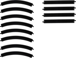 Komplektis olevad 8 kaardus ja 4 sirget rööpa võimaldavad hõlpsalt ehitada ovaali või laiendada olemasolevat rada. Rööbaste vahe 1,4 cm stabiilseks sõiduks.