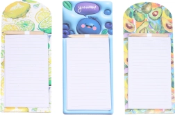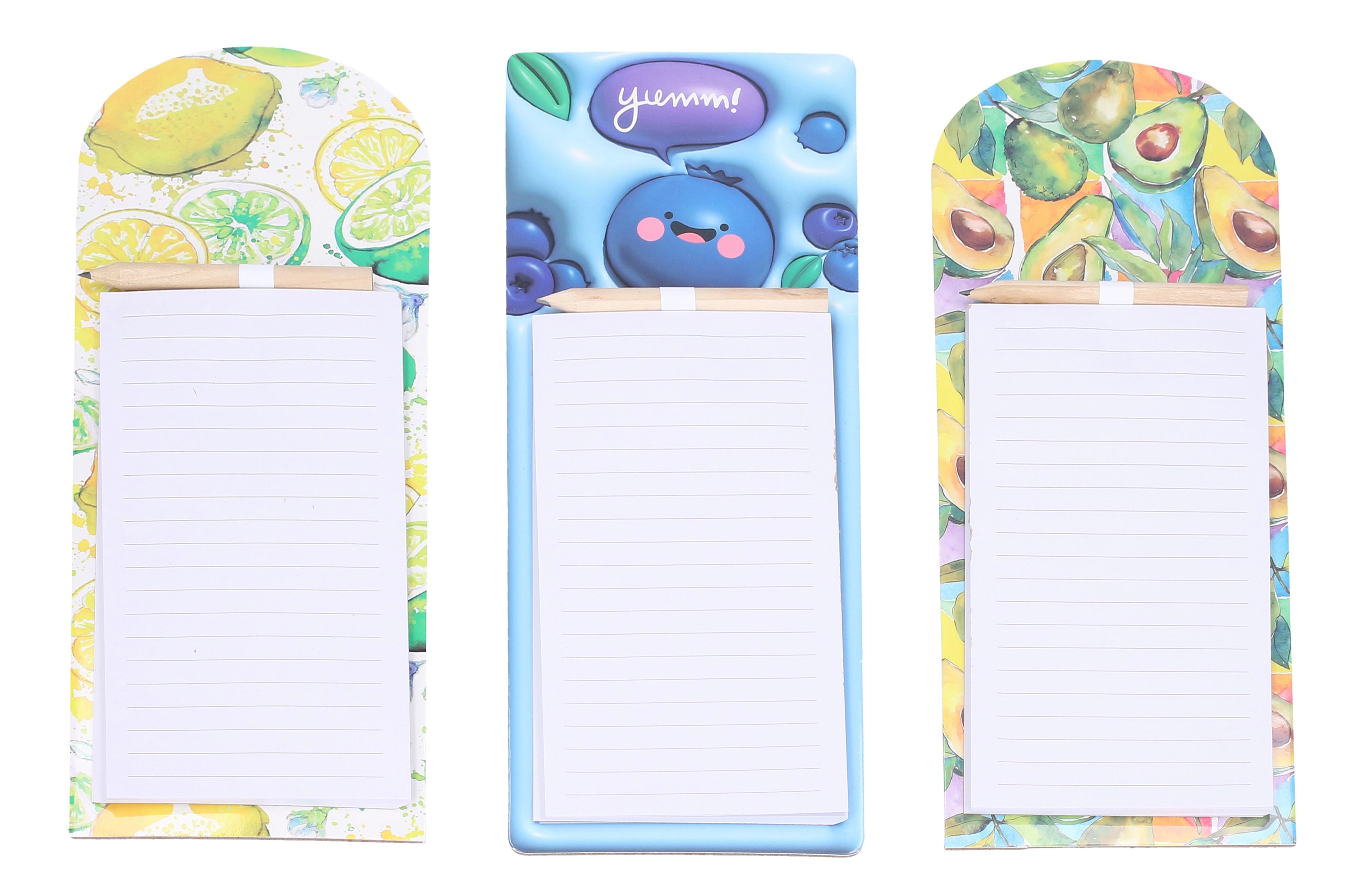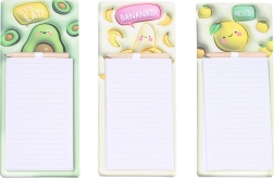 Too kord ostudes ja igapäevastes ülesannetes magnetiliste plokkidega, millel on lõbusad puuviljamotiivid. Tänu tugevale magnetile kinnitad need hõlpsalt külmkapile või muudele metallpindadele, nii et need on alati käepärast. Komplektis on praktiline pliiats, mis on ülaossa kinnitatud, et saaksid kirjutada igal ajal ja ilma otsimiseta.