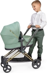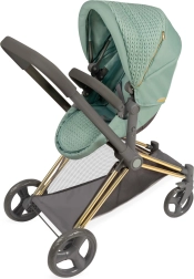 See stiilne nukuvanker paistab silma modernse mentoolrohelise kanga ja dekoratiivsete detailidega, sh kuldsete aktsentidega. Läbimõeldud konstruktsioon võimaldab seda hõlpsalt muuta sügavvankrist spordiversiooniks ja vastupidi. Kõrgem lükkesang (73 cm) tagab mugava käsitsemise ka eelkooliealistele lastele.