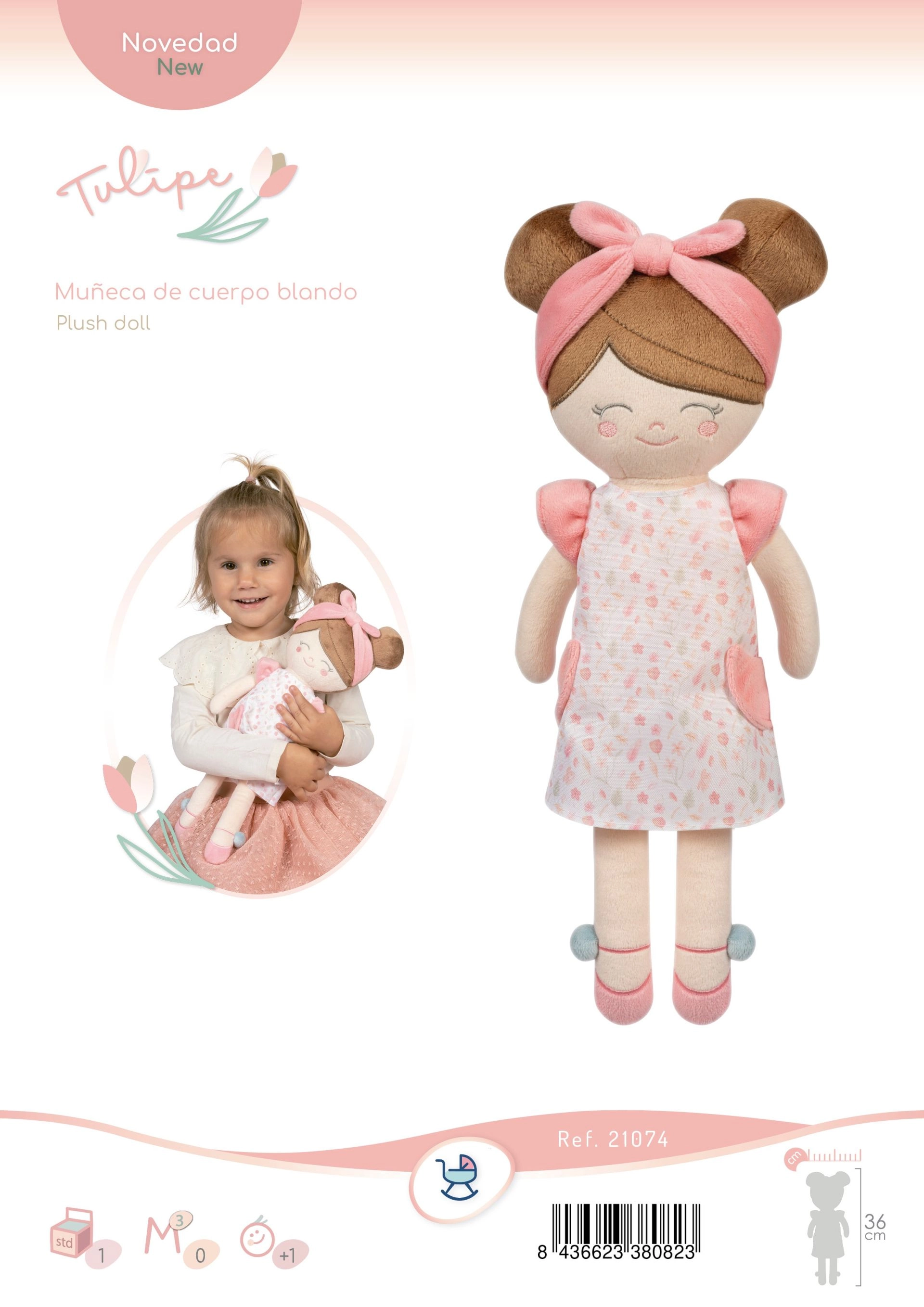 Armas pehme nukk Tulipe, kõrgus 36 cm, on ideaalne esimene sõber kõige pisematele. Valmistatud õrnast, siledast plüüsist, on väga kerge ja tänu käsipesule 30 °C juures lihtne hooldada. Pastelsed lõheroosad toonid ja lillelised detailid Tulipe kollektsioonist toovad kauni Hispaania disaini ning pehme kallistustunde nii kodus kui ka reisil.