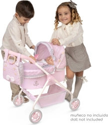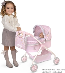 Praktiline varustus hõlmab eemaldatavat kotti vankrile või käes kandmiseks, vankrikorvi katet nööpaukude ja taskutega, mugavat madratsit ning alumist panipaika pisiasjadele. Hispaania disain ja täpne teostus tagavad pika kasutusea ja rõõmu mängimisest iga päev.