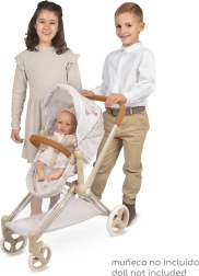 Vanker on kokkupandav, võtab kokkupandult minimaalselt ruumi ja on mugav transportimiseks. Eemaldatav kandev vankrikorv võimaldab nukku turvaliselt kanda, samas kui reguleeritav kapuuts, kolmepunktirihmad ja pöörlevad esirattad tagavad mugava ja sujuva sõidu. Komplektis on stiilne kott ja alumine panipaigakorv kõige vajaliku jaoks.