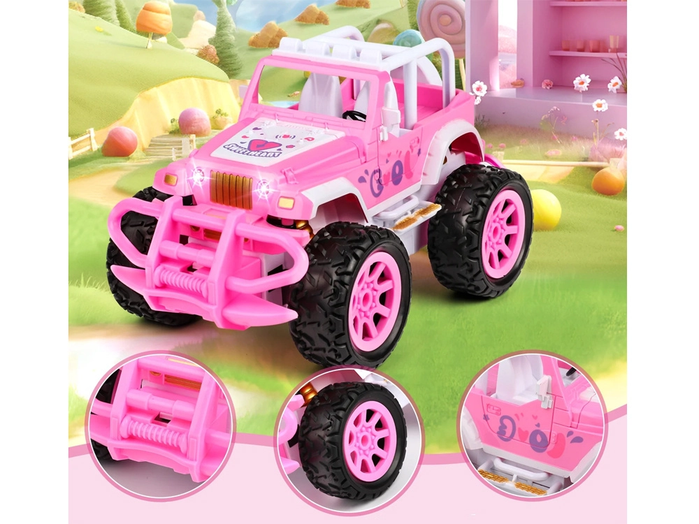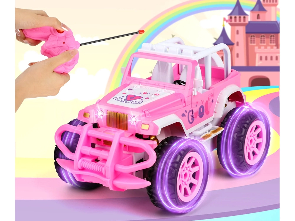 Stiilne roosa RC maastikuauto lastele ühendab pilkupüüdva disaini ja dünaamilise sõidu. Tänu lihtsale kaugjuhtimispuldile õpivad lapsed kiiresti sõitma edasi, tagasi ja pöörama, arendades samal ajal peenmotoorikat ja loogilist mõtlemist. Valgusefektid annavad sõidule realistlikkust ja veelgi rohkem lõbu.