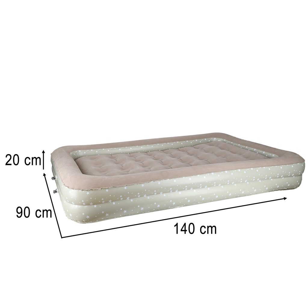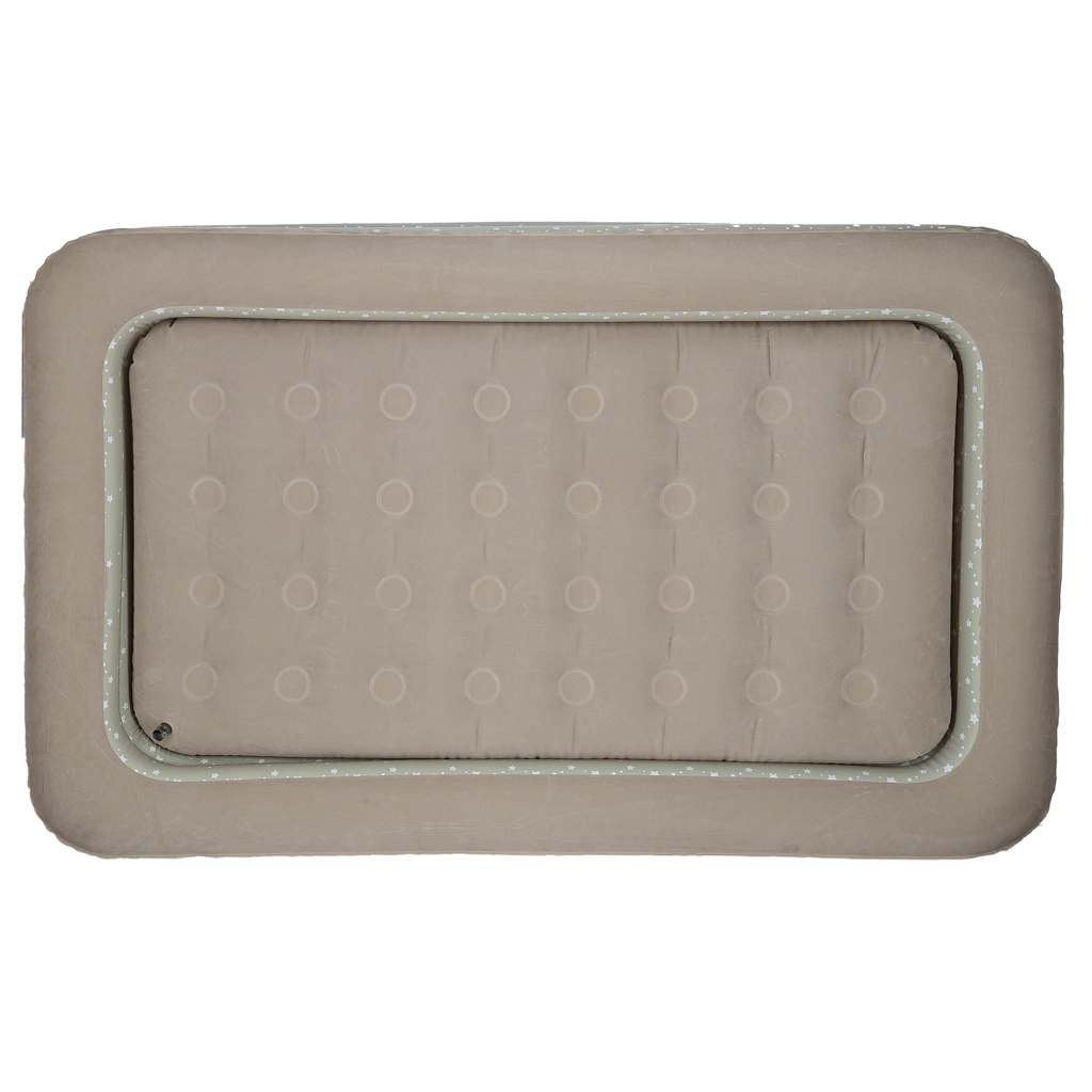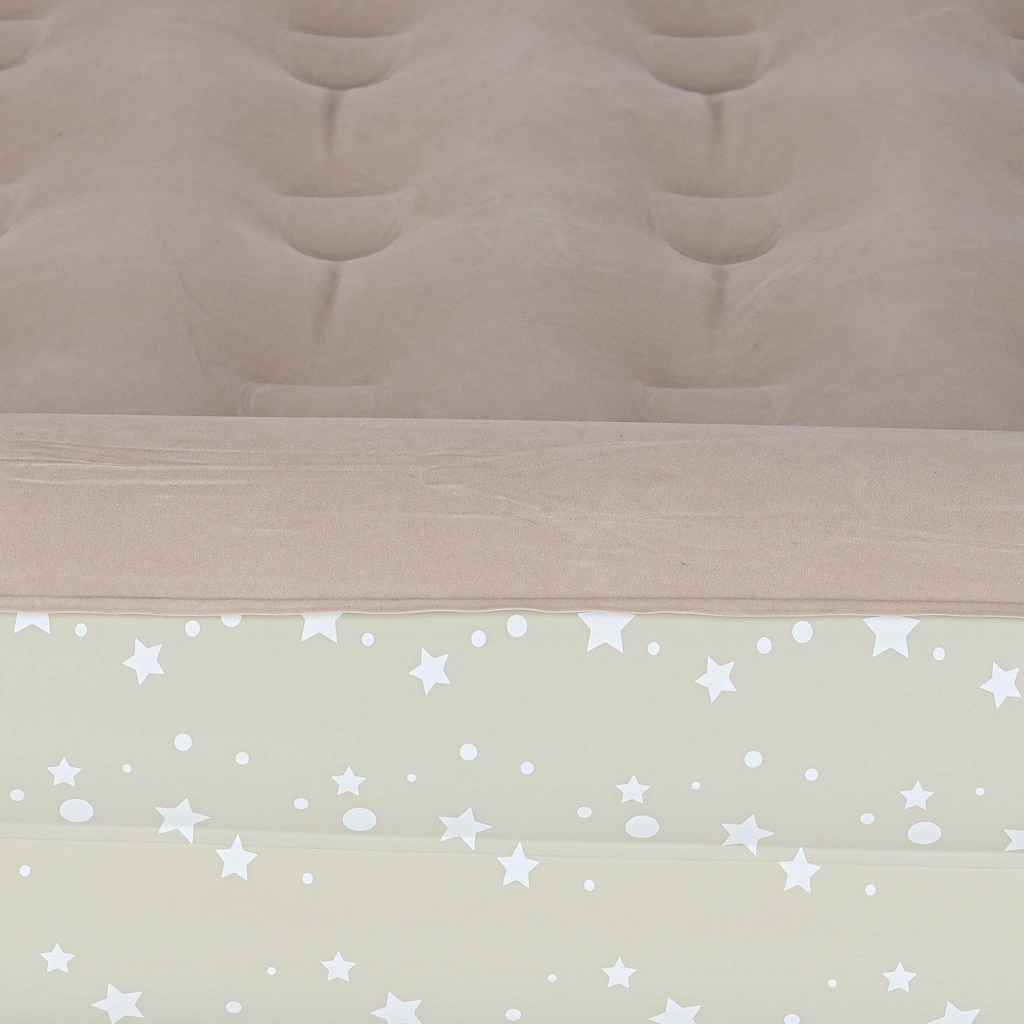 Loo lastele mugav ja turvaline keskkond kõikjal – see kaheosaline laste täispuhutav voodi ühendab välisraami kõrgendatud servadega ja eemaldatava sisemise madratsi. Pehme flokitud (seemisnahkne) pind on meeldiv puudutusele ja hoiab voodipesu libisemast. Elegantne tähekestega muster annab voodile mängulise ilme.