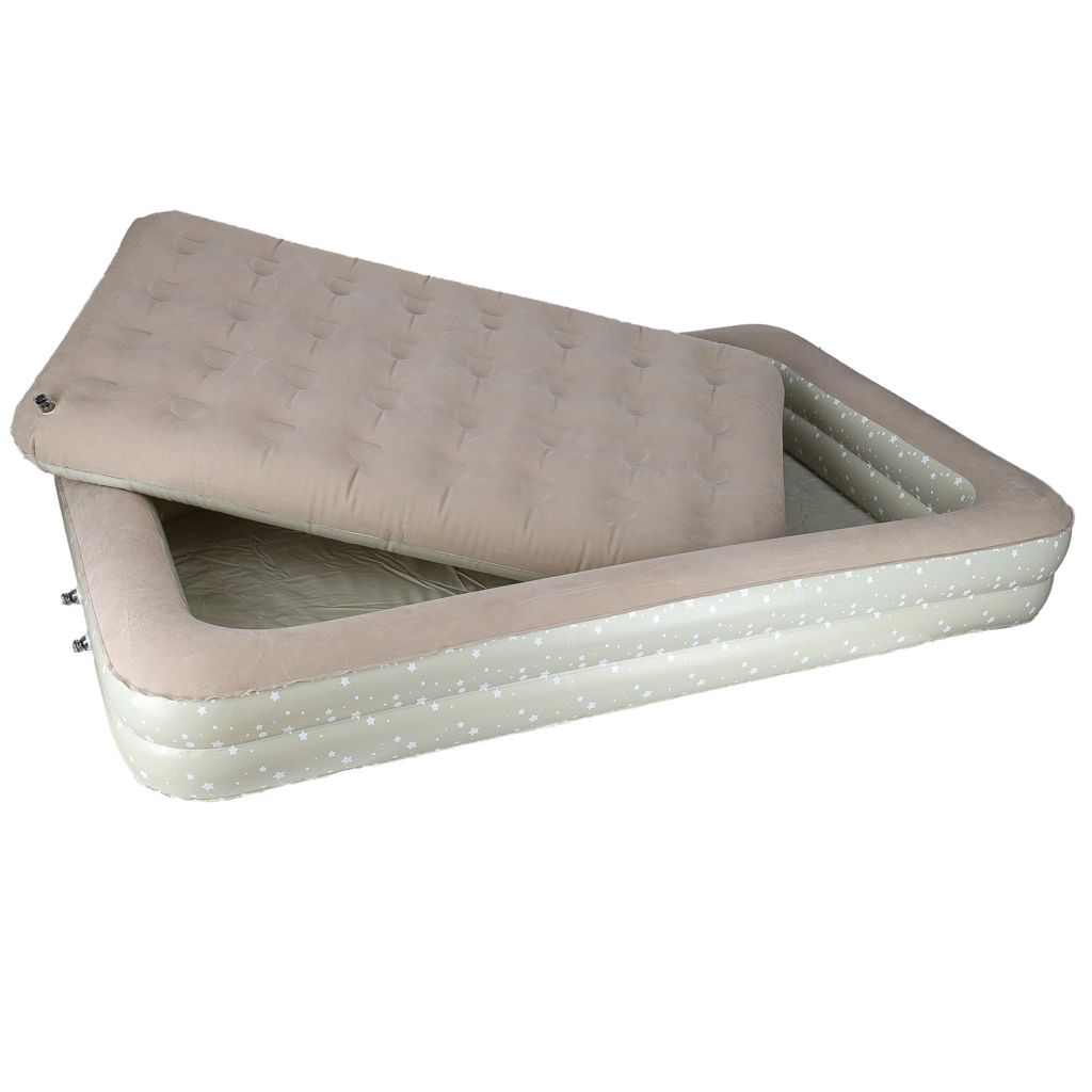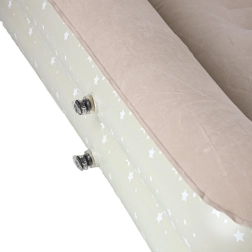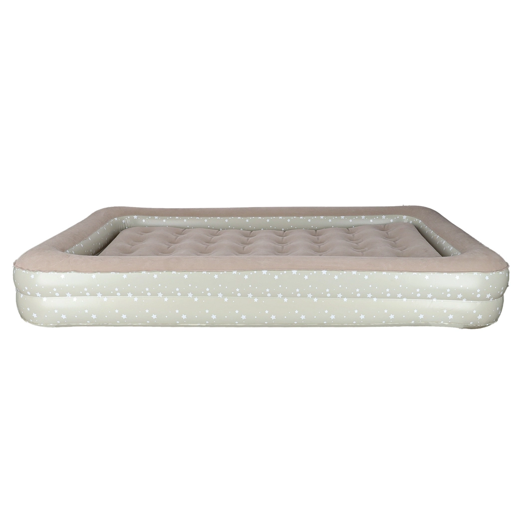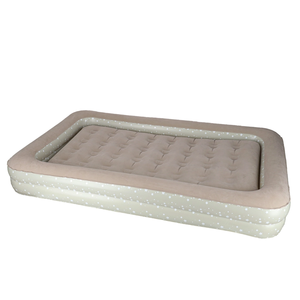 Loo lastele mugav ja turvaline keskkond kõikjal – see kaheosaline laste täispuhutav voodi ühendab välisraami kõrgendatud servadega ja eemaldatava sisemise madratsi. Pehme flokitud (seemisnahkne) pind on meeldiv puudutusele ja hoiab voodipesu libisemast. Elegantne tähekestega muster annab voodile mängulise ilme.