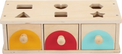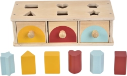 Tark puidust mänguasi kõige pisematele, mis ühendab lõbu ja õppimise. Lapsed panevad värvilised kujundid vastavatesse avadesse ning valmis tükid libisevad kolme erinevat värvi sahtlisse. Kohene tagasiside arendab põhjus-tagajärg seoste mõistmist, loogilist mõtlemist, käe-silma koordinatsiooni ja peenmotoorikat.