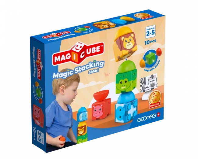 Komplektis on 5 magnetilist kuupi safari loomamotiividega ja 5 värvilist magnetilist poolkera. Tükid on vastupidavad, käes mõnusad ning kavandatud turvaliseks mänguks juba alates 2. eluaastast. Ehituskomplekt on täielikult ühilduv teiste Magicube sarja komplektidega, nii et fantaasiamaailm saab pidevalt kasvada.