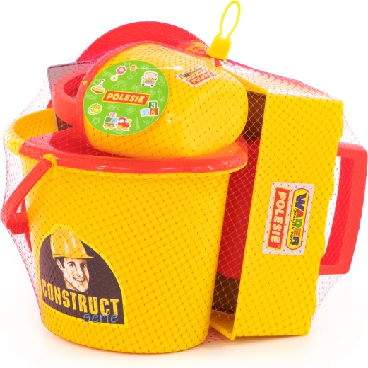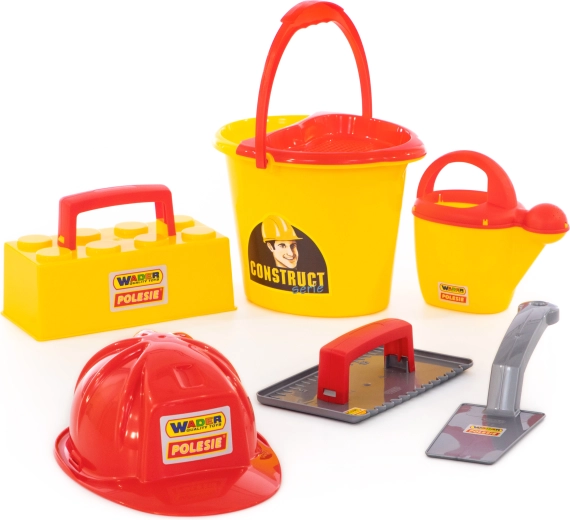 Kõik vajalik ühes: ämber, kann, müürikellu, silur, tellisevorm ja kiiver – valmis liivakasti ning randa.