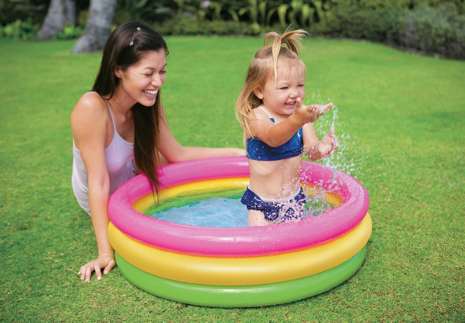 Kerge ja ohutu lastebassein vikerkaarekujundusega aias värskenduseks. Sellel on tugevad täispuhutavad seinad, kolm kambrit, pehme täispuhutav põhi ja see on valmistatud vastupidavast PVC-st. Ideaalne suviseks mänguks ja kiireks jahutuseks.